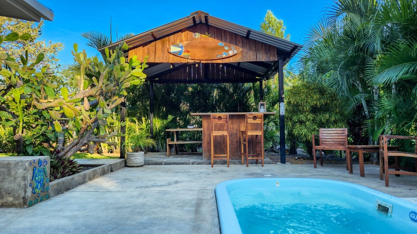 Step into a world where tranquility meets coastal charm, nestled within the verdant embrace of the Bosques del Mar community, a mere skip and jump from the vibrant heart of San Juan del Sur. This like-new construction, an absolute jewel, radiates an irresistible allure, a symphony of thoughtful touches and whimsical practicality. I