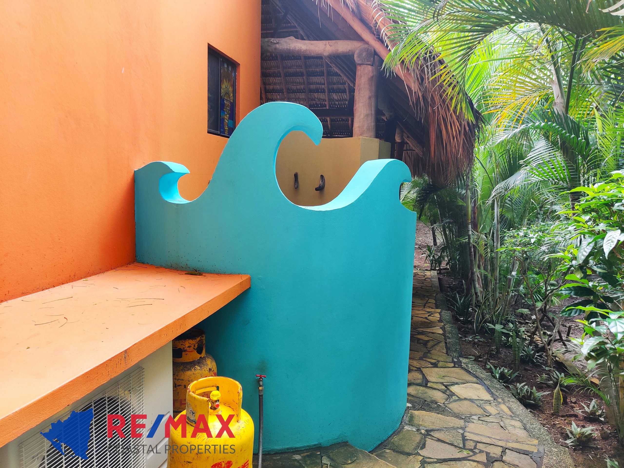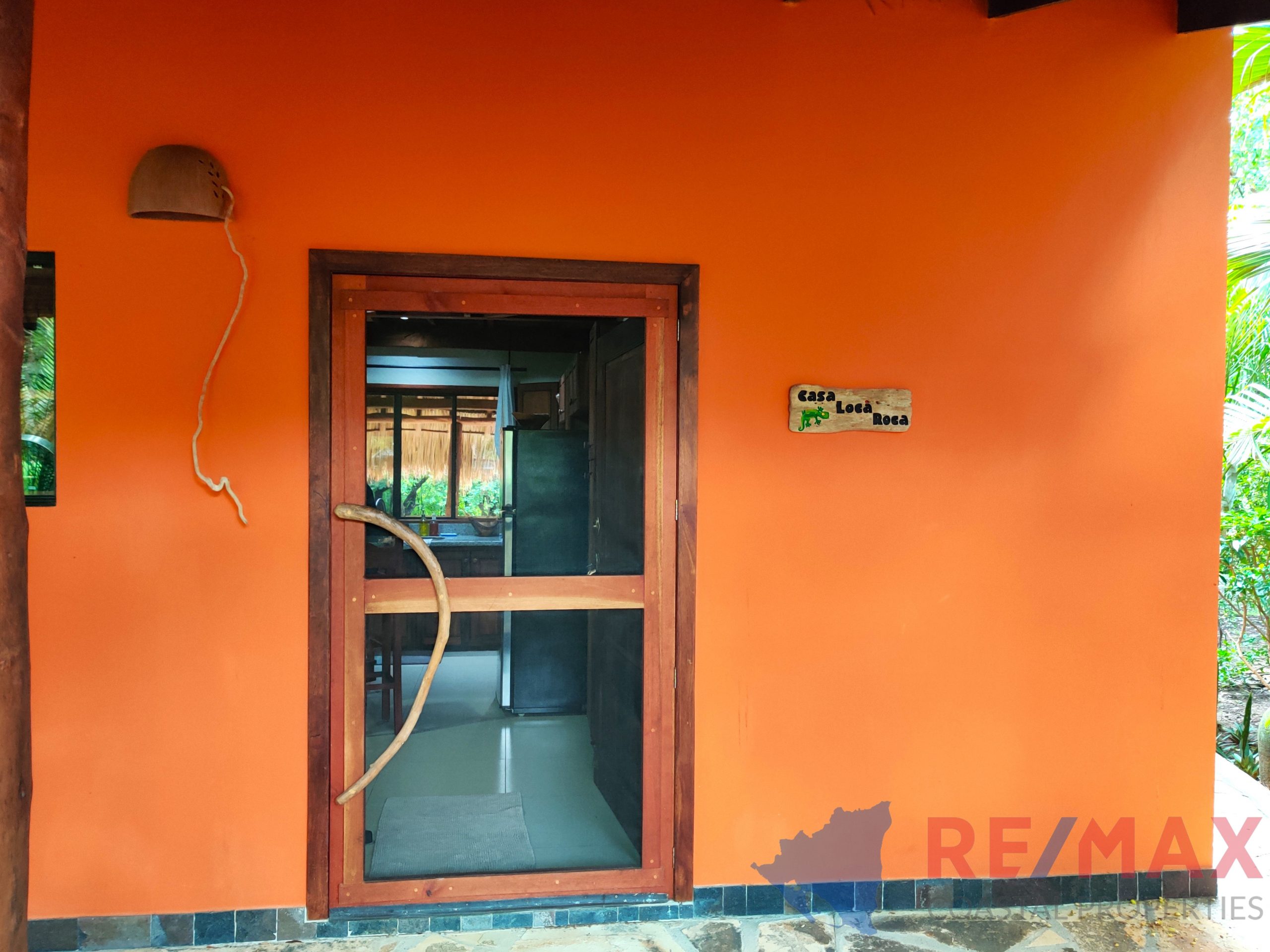 The house features 1 bedroom with a private bathroom and A/C on the second floor, plus a versatile convertible bed. As an added bonus, enjoy your mornings on the front porch, adorned with inviting rocking chairs, or relax in the expansive rancho or palapa, complete with a natural thatched roof that provides ample shade. You’ll also find hammocks and wooden beach chairs, perfect for enjoying a cup of coffee while diving into your favorite book. Additionally, an outdoor shower with a unique beach wave design enhances the allure of this property.