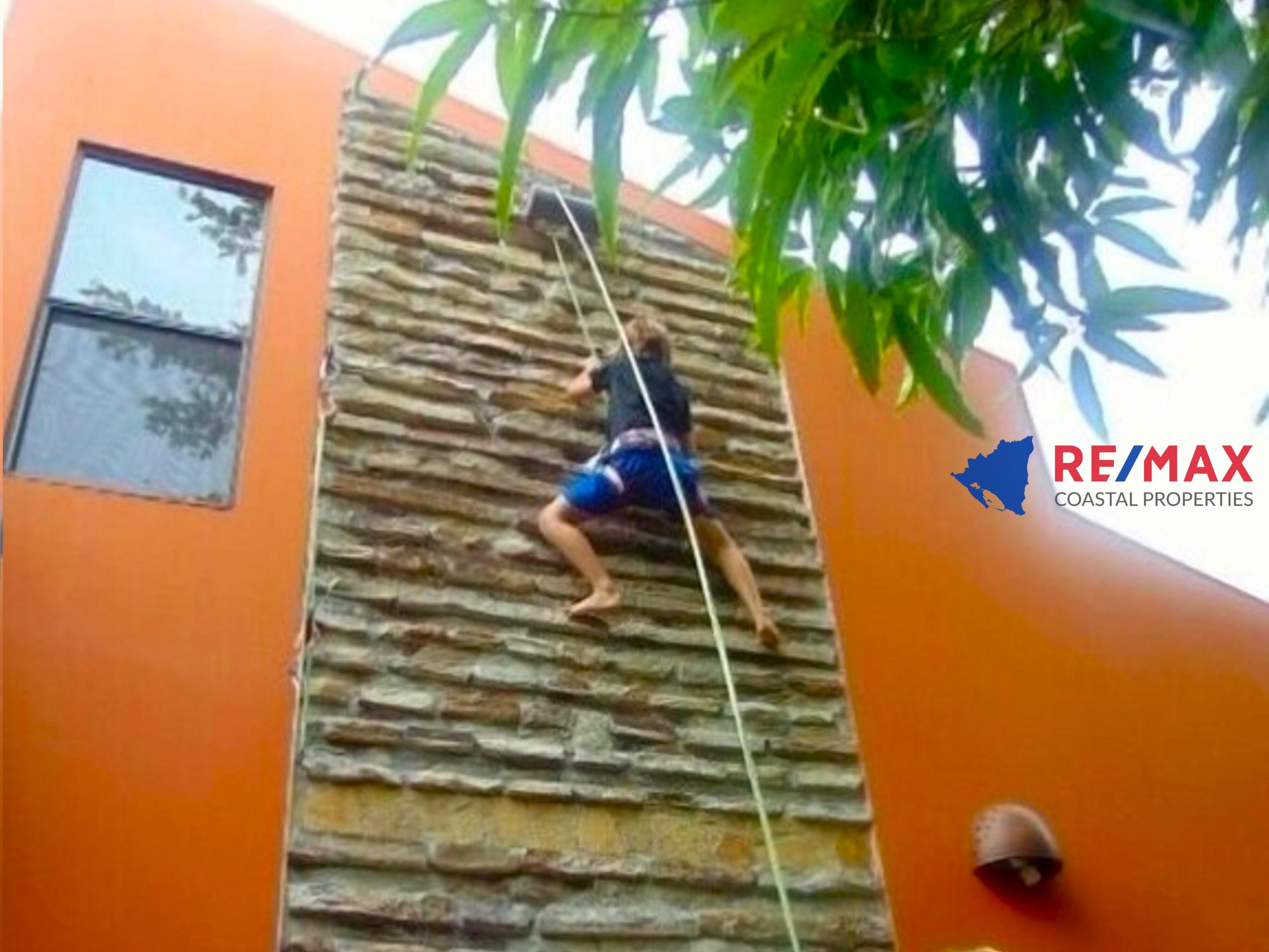 Moreover, the lush landscape attracts numerous birds, creating a natural symphony, and during the summer, you might even spot iguanas. As if that weren’t enough, this house boasts a distinctive design, including a charming homemade climbing wall.