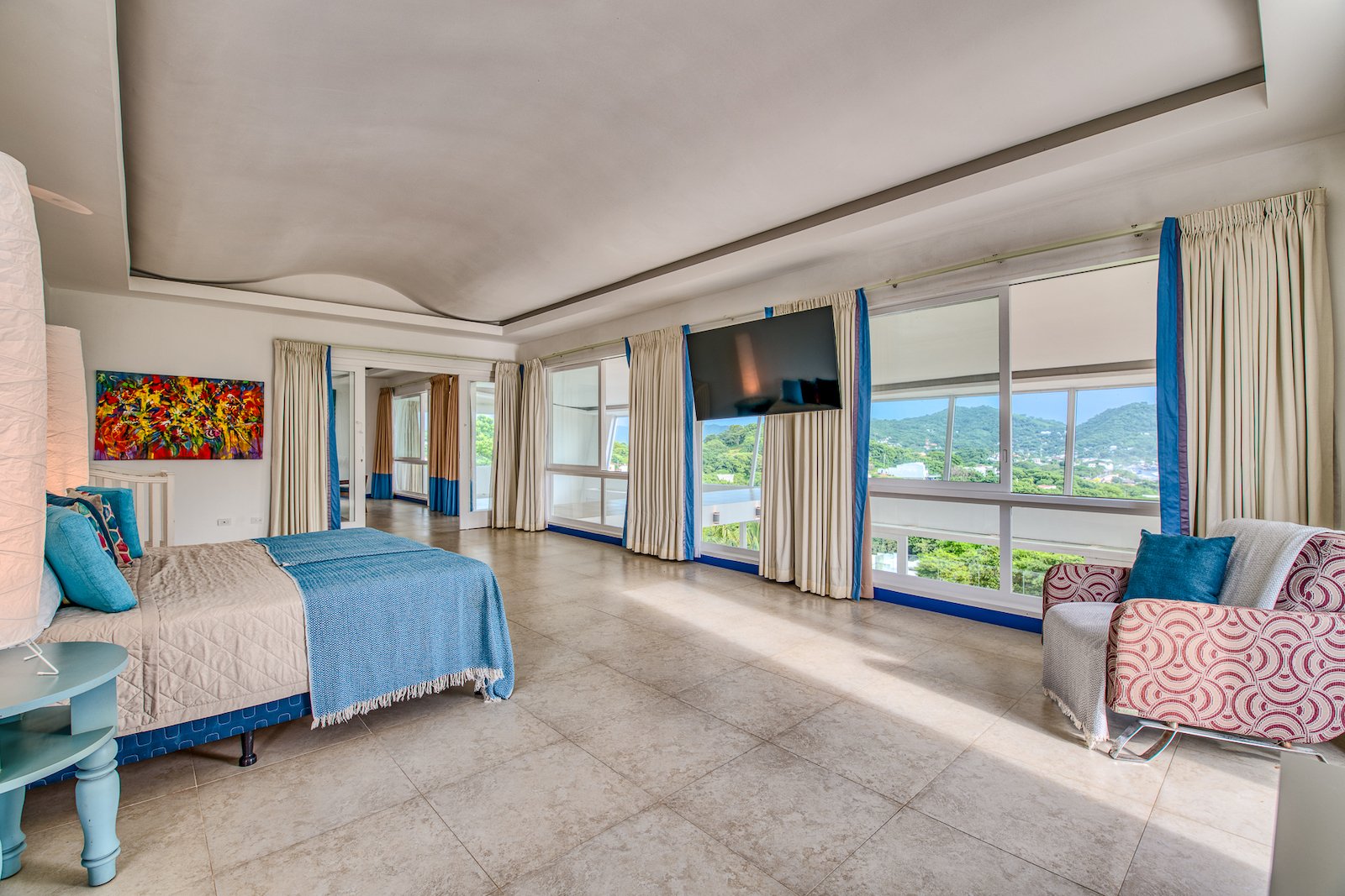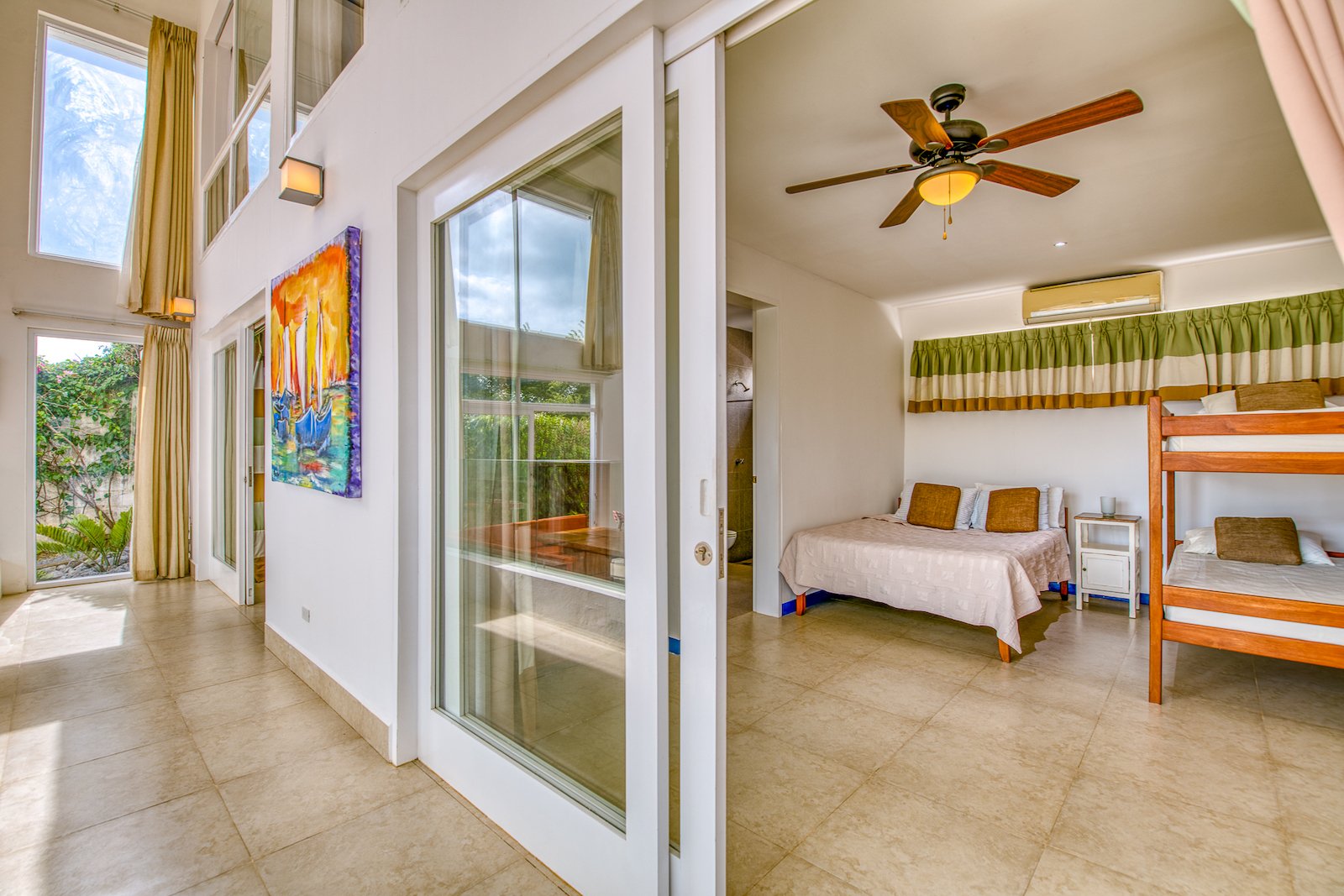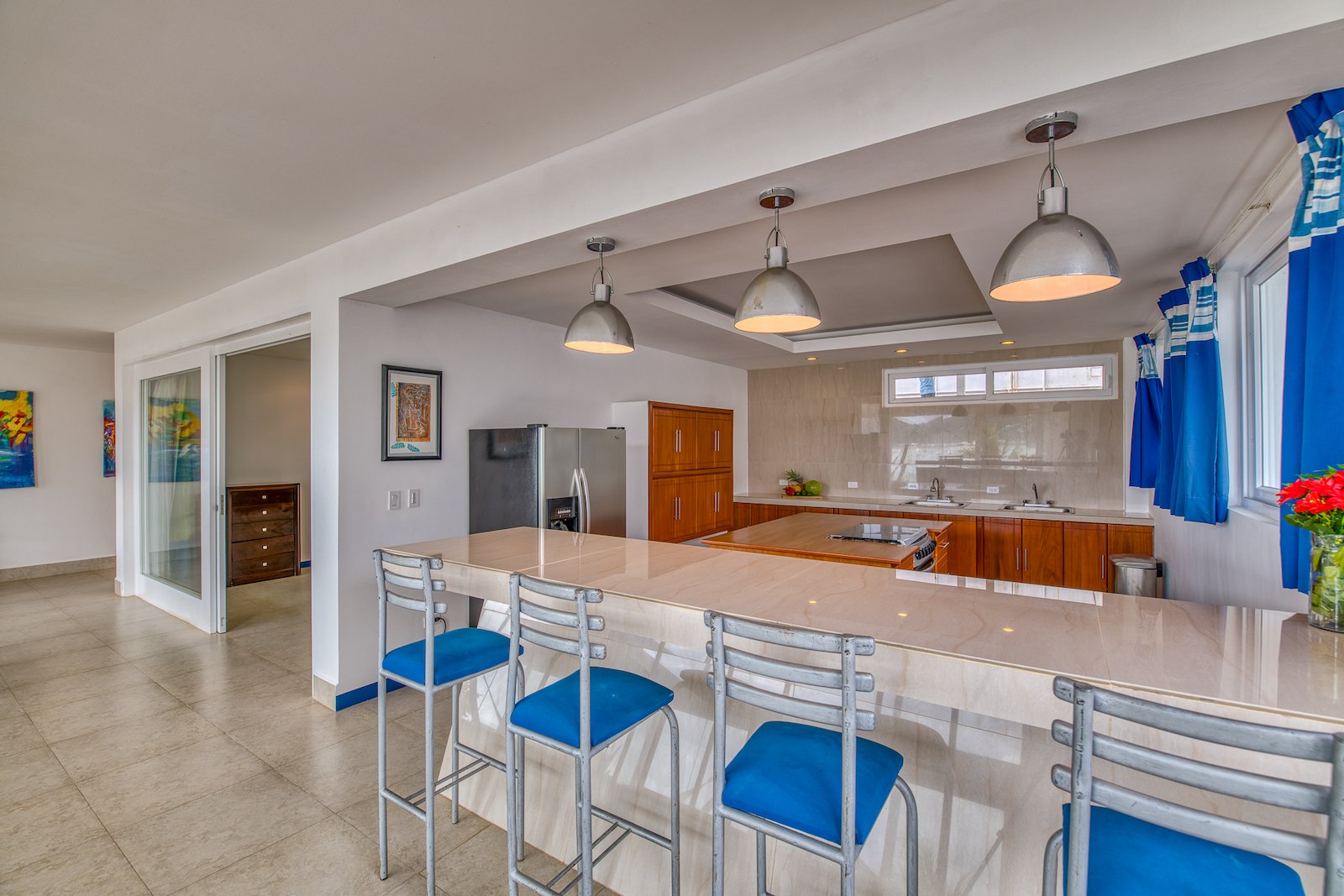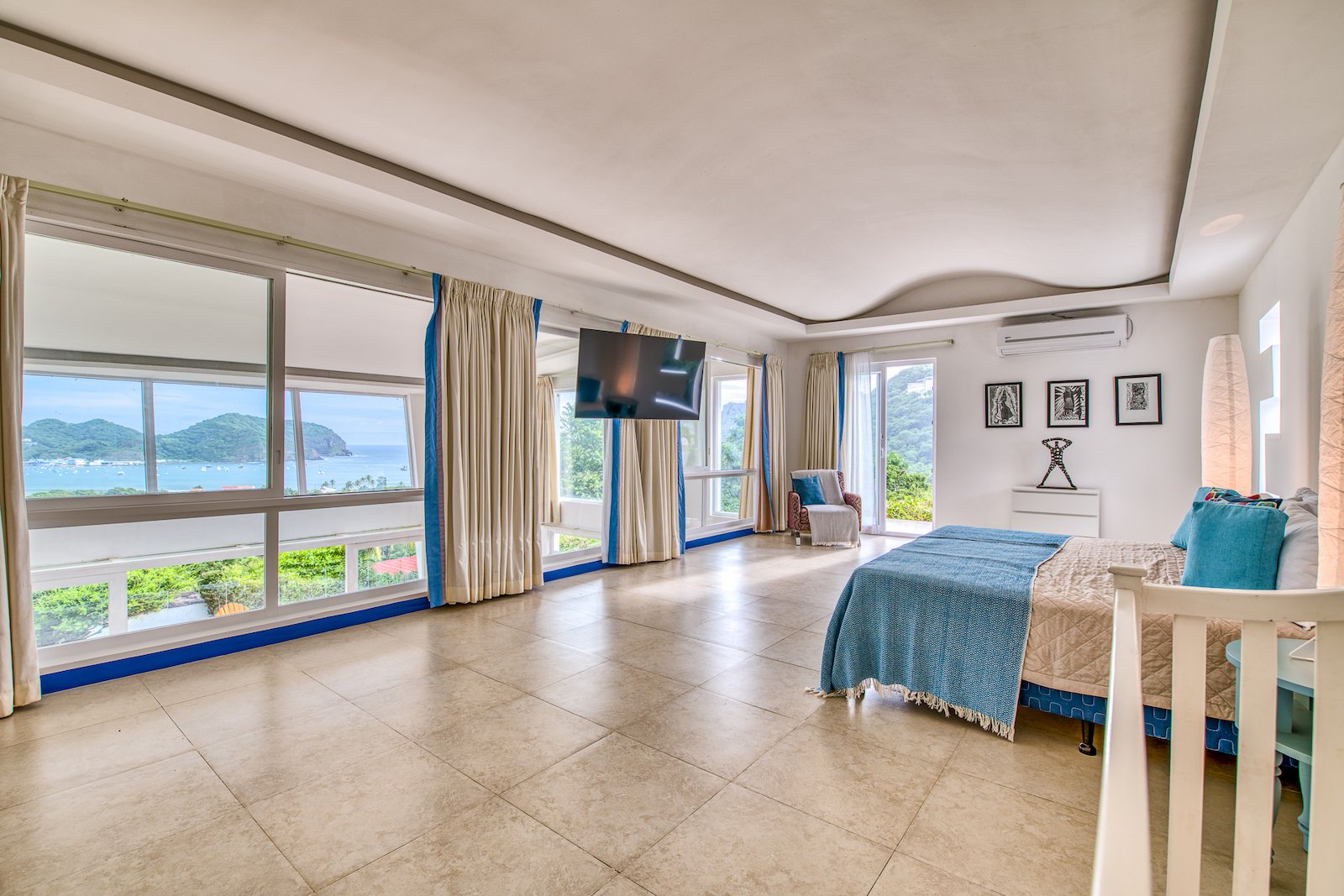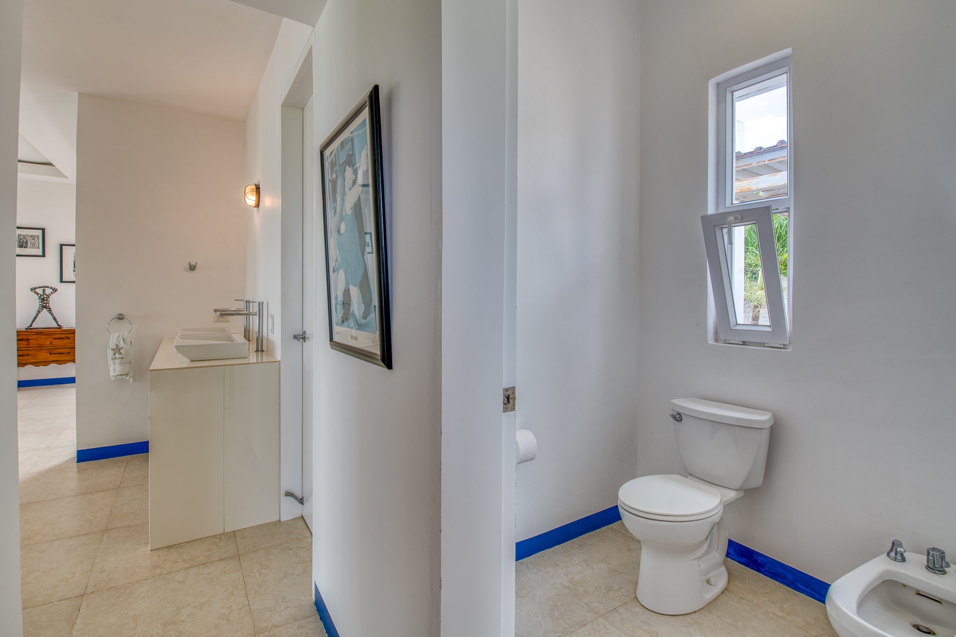 The lower level of the home has 3 bedrooms, and 2.5 bathrooms, one of the bedrooms is currently outfitted as a home office.  The kitchen and enormous open living area are also centered around the picturesque views of the ocean and mountains.  The southwest-facing side of the home has floor-to-ceiling glass windows that provide jaw-dropping views of San Juan del Sur and the ocean. Glass sliding doors open up to the coral-tiled outdoor area, with a large pool for soaking up the incredible imagery.