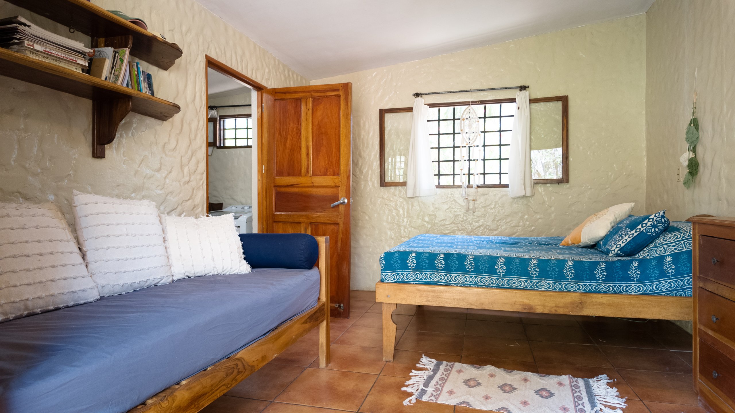This bungalow in San Juan del Sur comfortably sleeps up to five people, making it ideal for a couple, small family, or in particular as a high-performing Airbnb. It’s cozy, low-maintenance, and incredibly livable. The private water tank and hot water heater ensure you’re comfort, and the property includes patios in both the front and back for outdoor lounging or gardening.