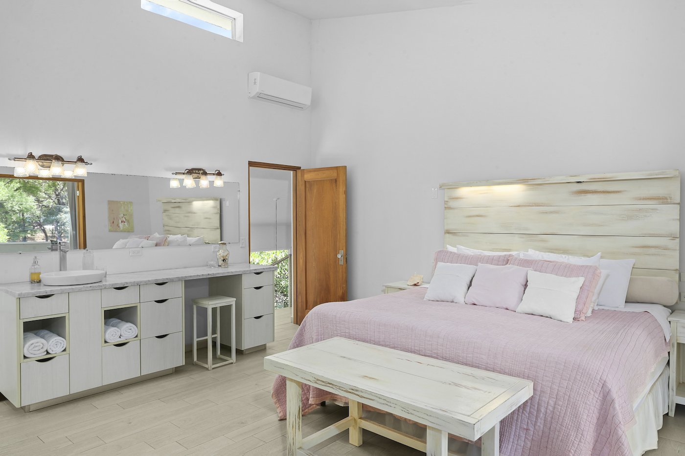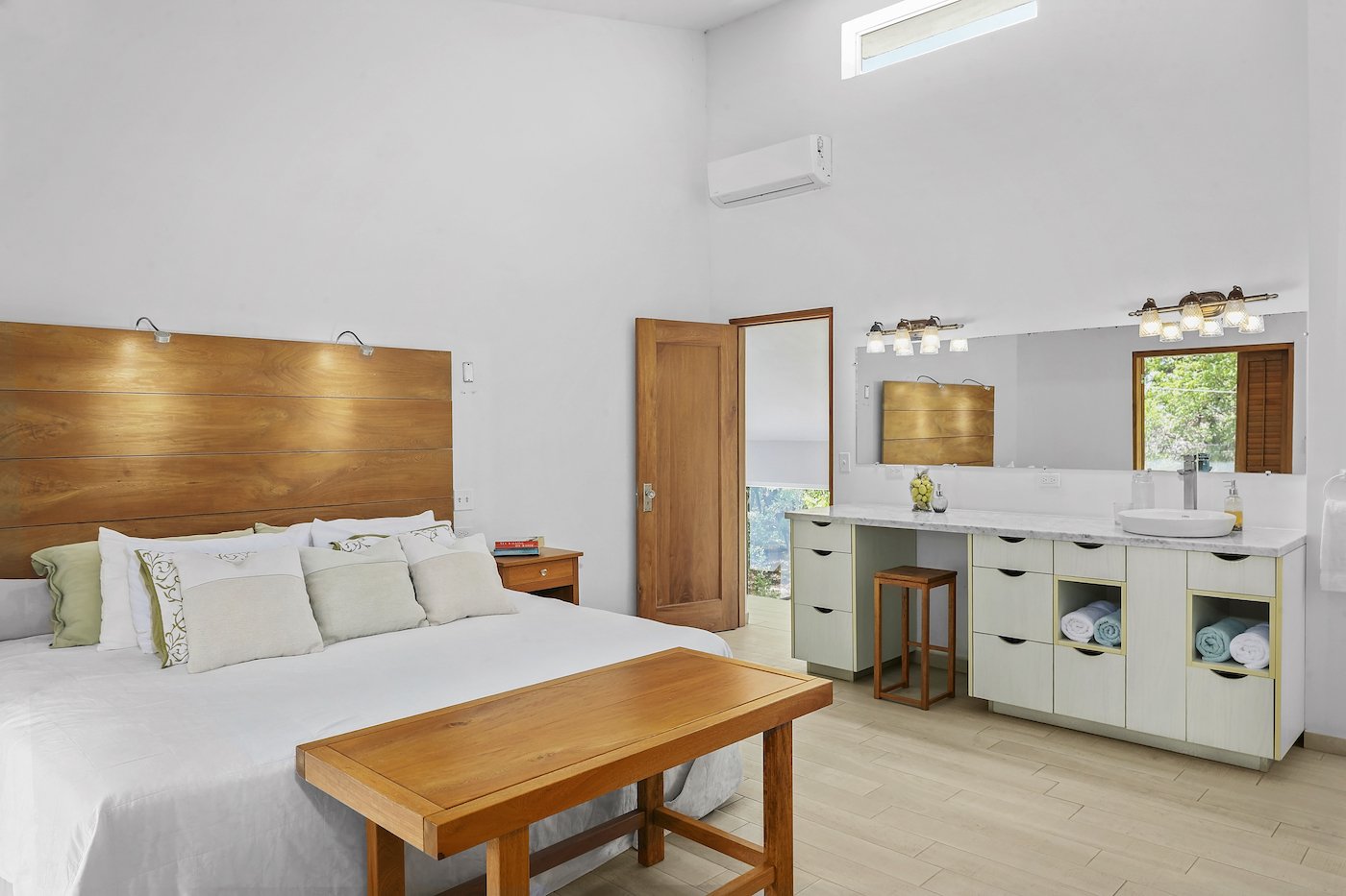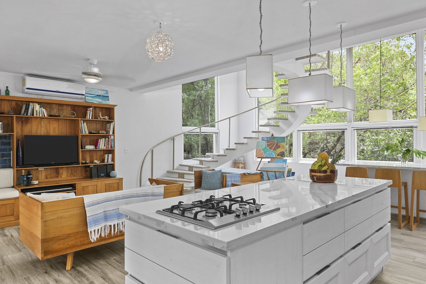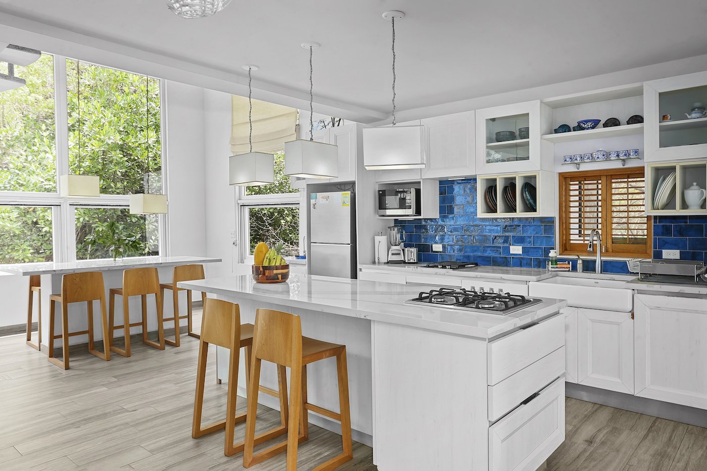 This Hacienda Iguana Beach House has all the features you would expect, including wrap-around screen porches and balconies on both levels. The vaulted ceilings and spacious windows create an open feel to the main living area, while a grand, sweeping staircase captivates your attention and adds a touch of modern luxury to the charming feel. The house is decorated with Italian quartz, handcrafted oak furniture, louvered oak doors, open showers, and natural fiber upholstery in the interior. The exterior features a sparkling pool, sand dunes in the front yard, and a natural mangrove forest in the backyard. No expense was spared in the Hacienda Iguana Beach House. The kitchen contains high-end appliances to cook up the catch of the day after a long session on the water. The high ceilings, large screen windows, and open design concept ensure that minimal to no use of the A/Cs in every room is required. Solar-powered hot water and the electrical backup system ensure that this eco-friendly home keeps you comfortable!