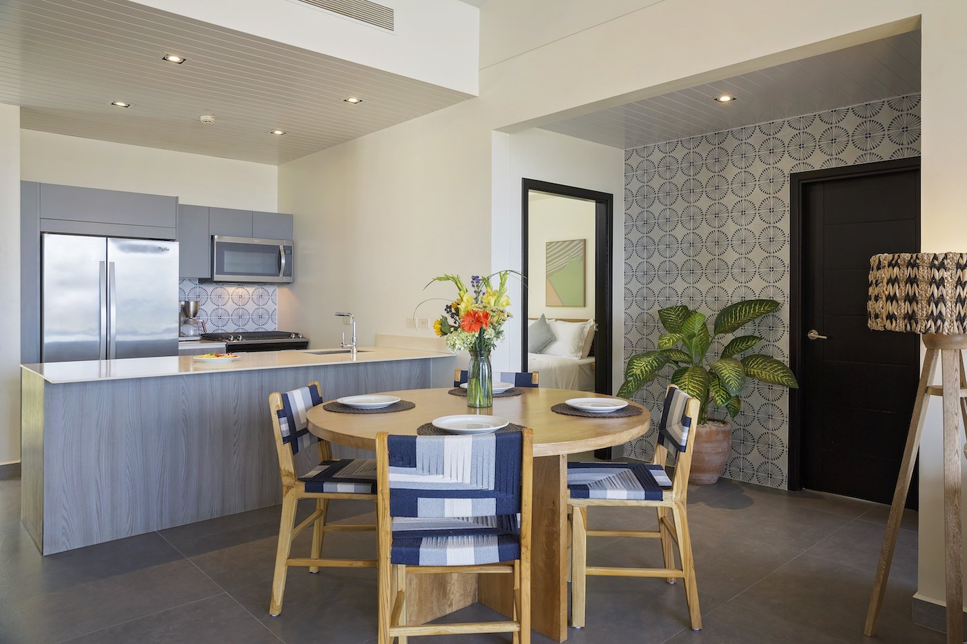 Step inside the Luxury Oceanview Condo in La Santa Maria and experience modern coastal elegance. The open-concept design is bright and airy, with floor-to-ceiling glass doors leading to a private terrace where you can soak in the stunning ocean views. The kitchen features high-end appliances, quartz countertops, custom tile work, and custom cabinetry, making it perfect for entertaining.