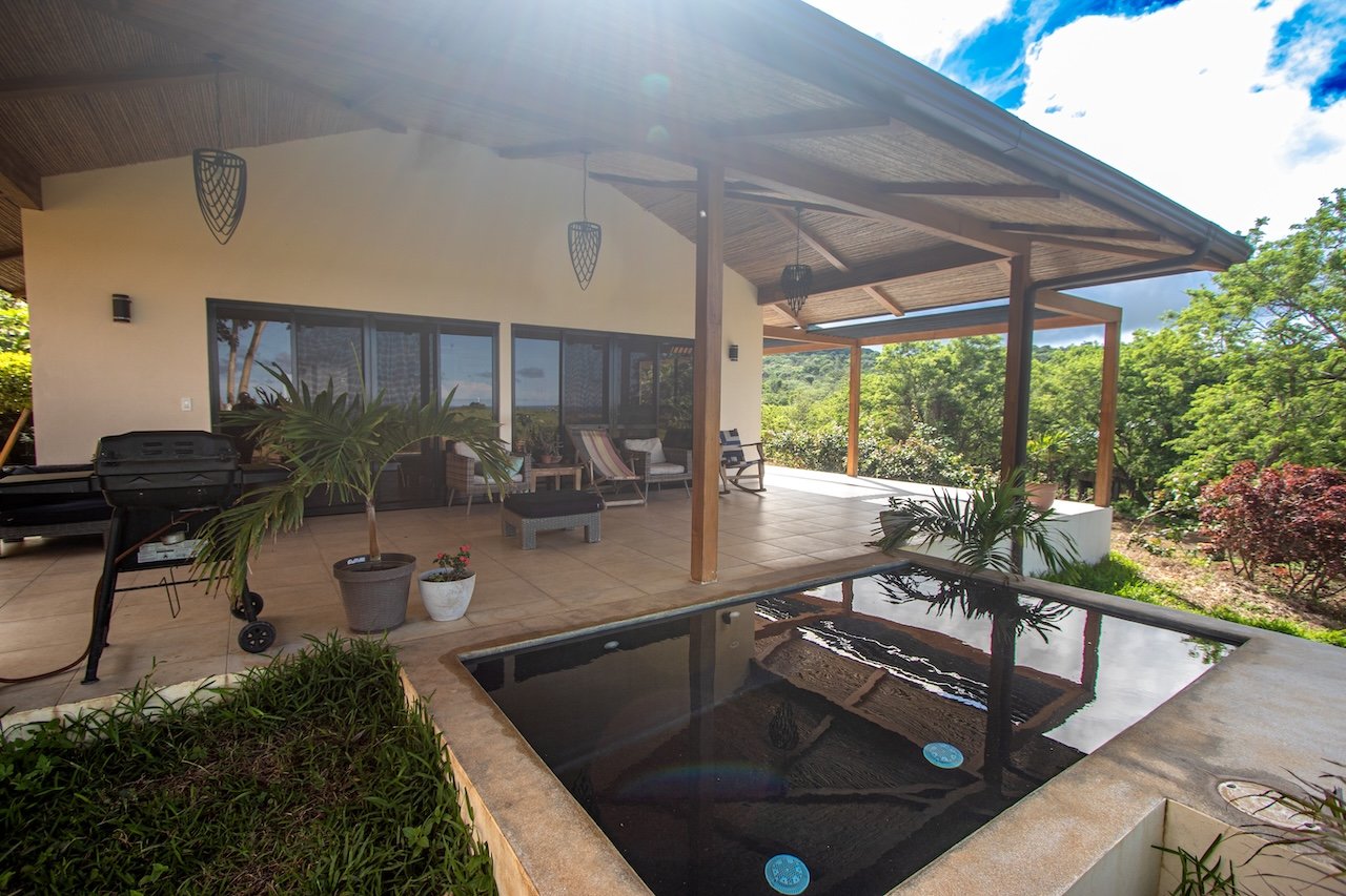 Nestled in the lush hills of El Encanto del Sur, this thoughtfully designed two-bedroom, two-bathroom bungalow offers a harmonious blend of indoor-outdoor living, breathtaking ocean vistas, and sustainable luxury. With 1,000 sq ft of interior space and an additional 850 sq ft of covered exterior living area, this single-story home maximizes comfort and connection with nature.