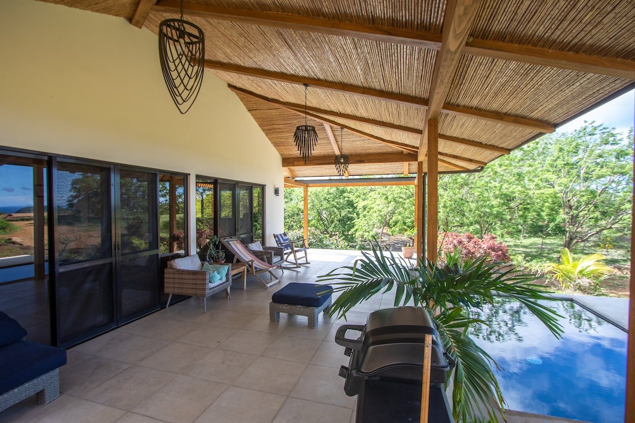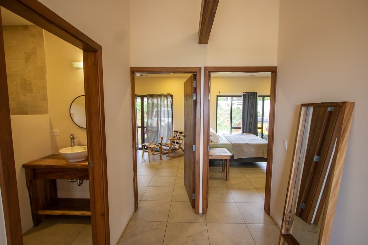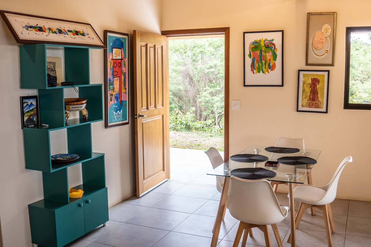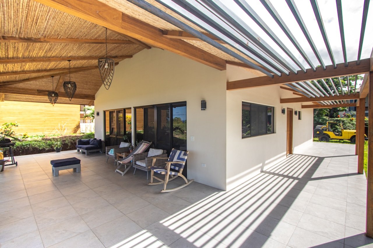 Designed to capture cooling ocean breezes and sweeping views from Costa Rica to Punta Majagual, each bungalow features floor-to-ceiling windows, an open-concept layout, and spacious decks, ideal for relaxing, entertaining, or simply soaking in the beauty of the Pacific coast. The modern kitchen, dining area, and living room flow seamlessly into the outdoor space, making it perfect for tropical living.