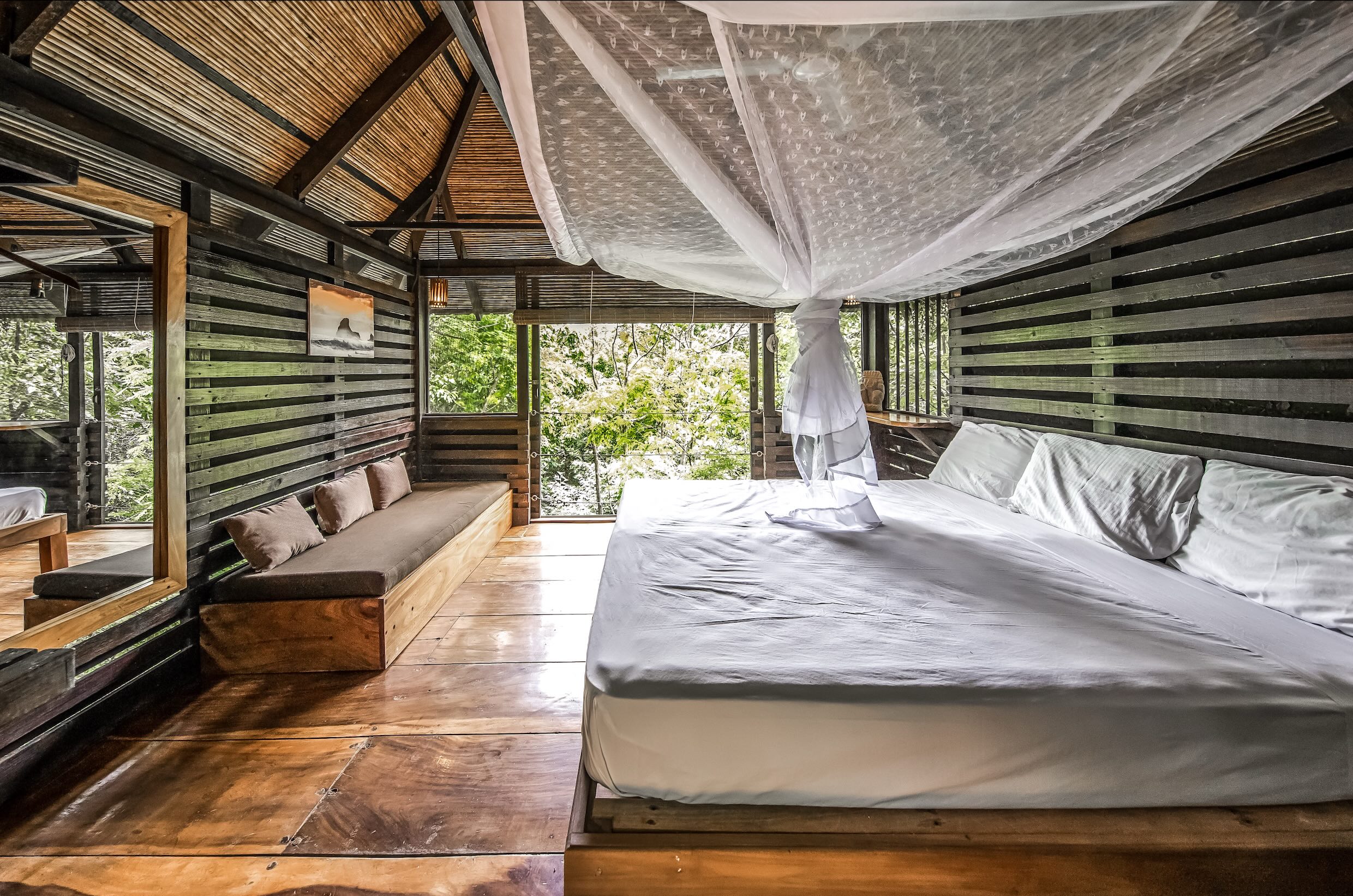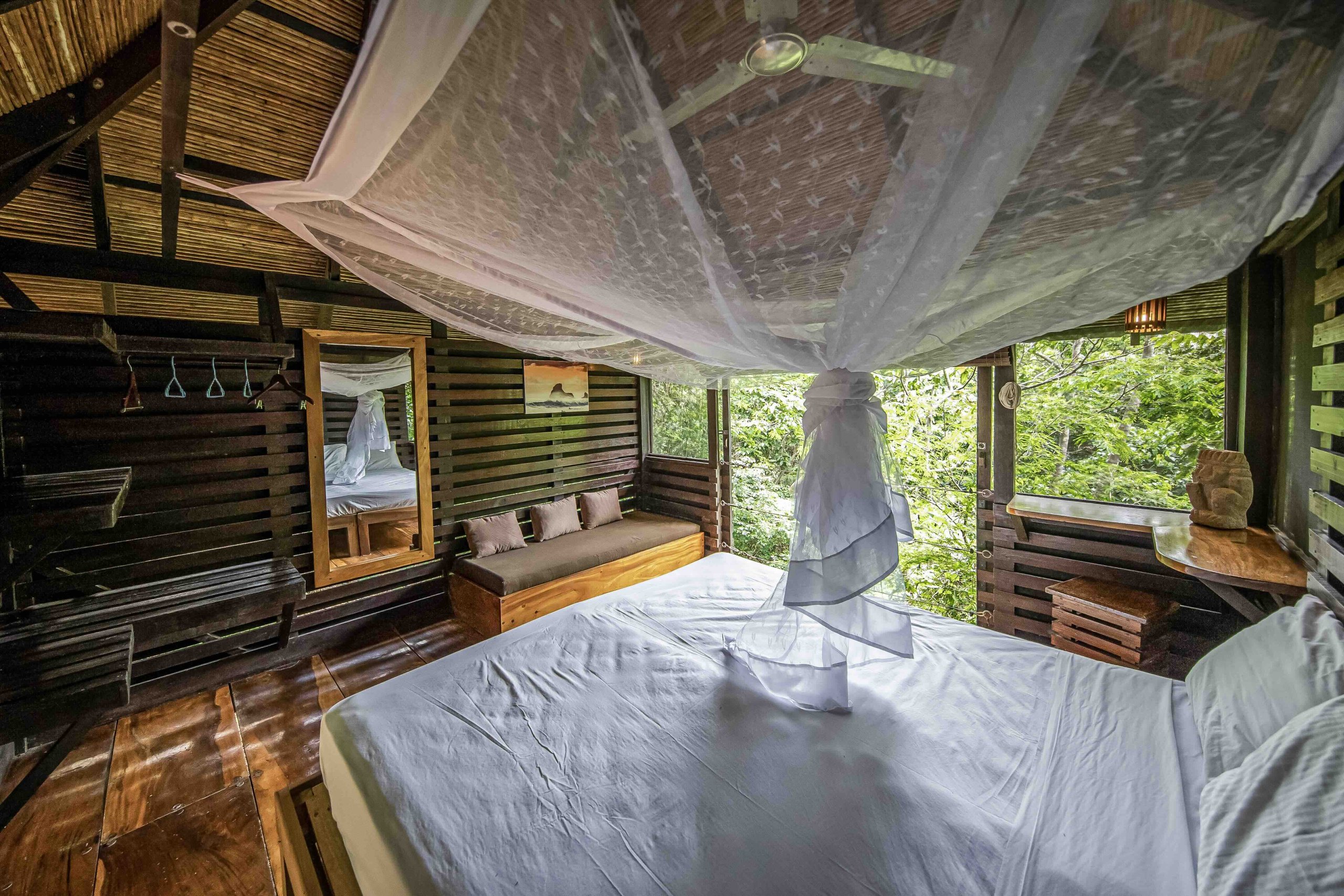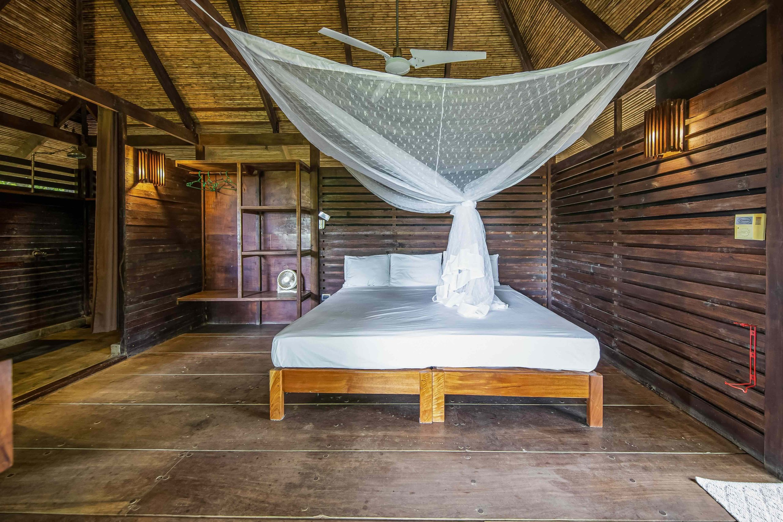 Currently, the lodge includes six eco-friendly cabanas, each with a private bathroom and balcony, providing an authentic tropical experience. With a total guest capacity of 15, the lodge fosters a friendly and intimate environment. An inviting common area features a spacious lounge, dining area, and a self-serve bar.