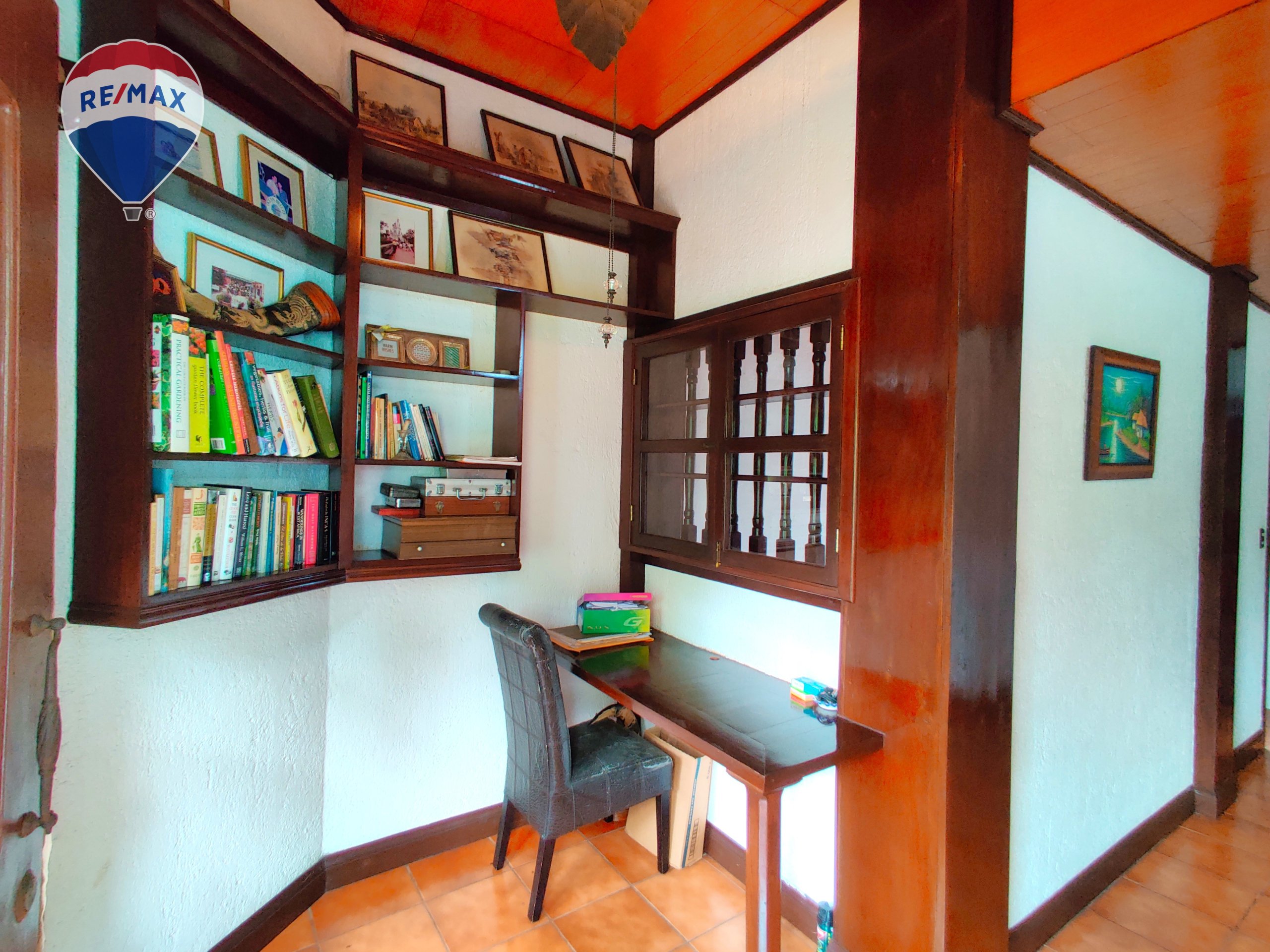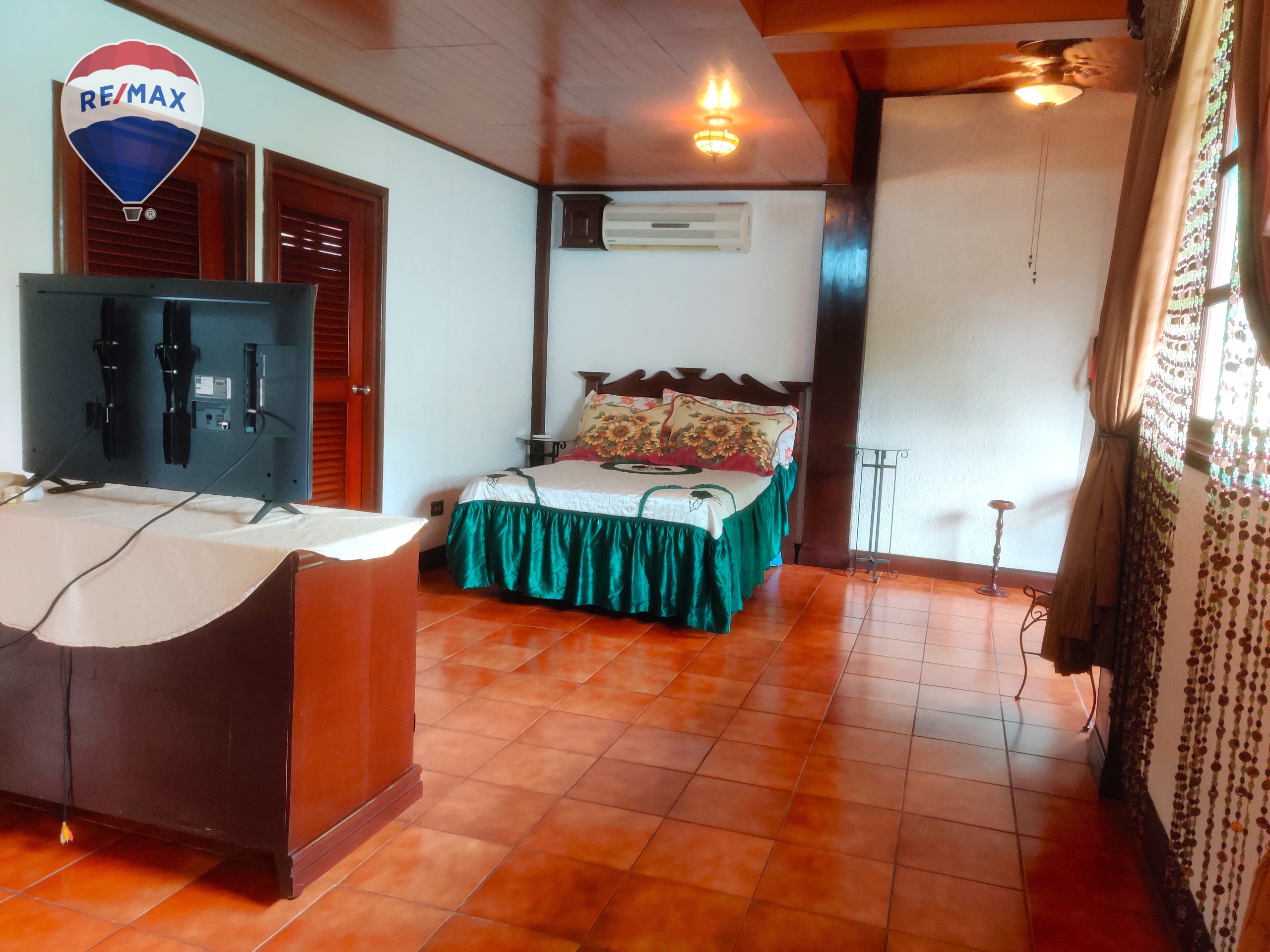 The main house consists of one spacious bedroom with private bathroom, walking closet, A/C, ceiling fans, balcony and a reading or small office area at the upper level.